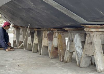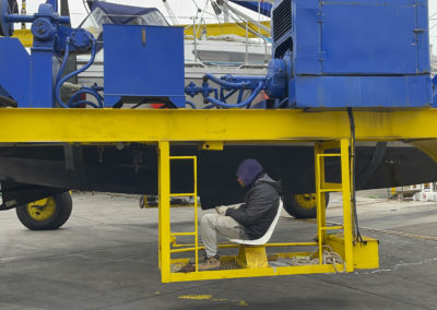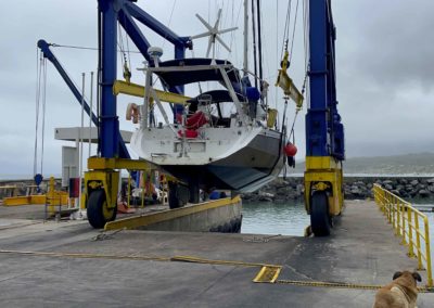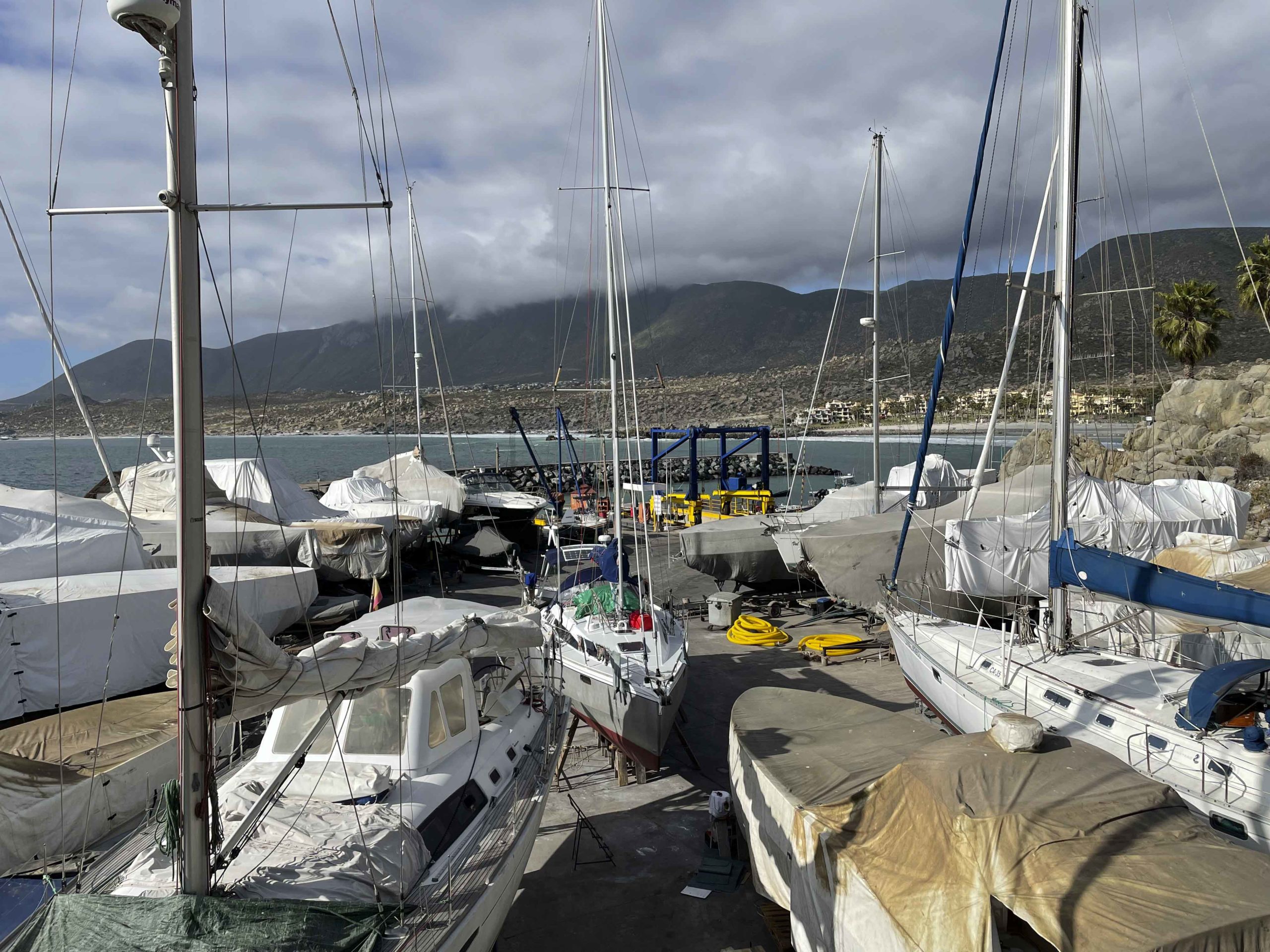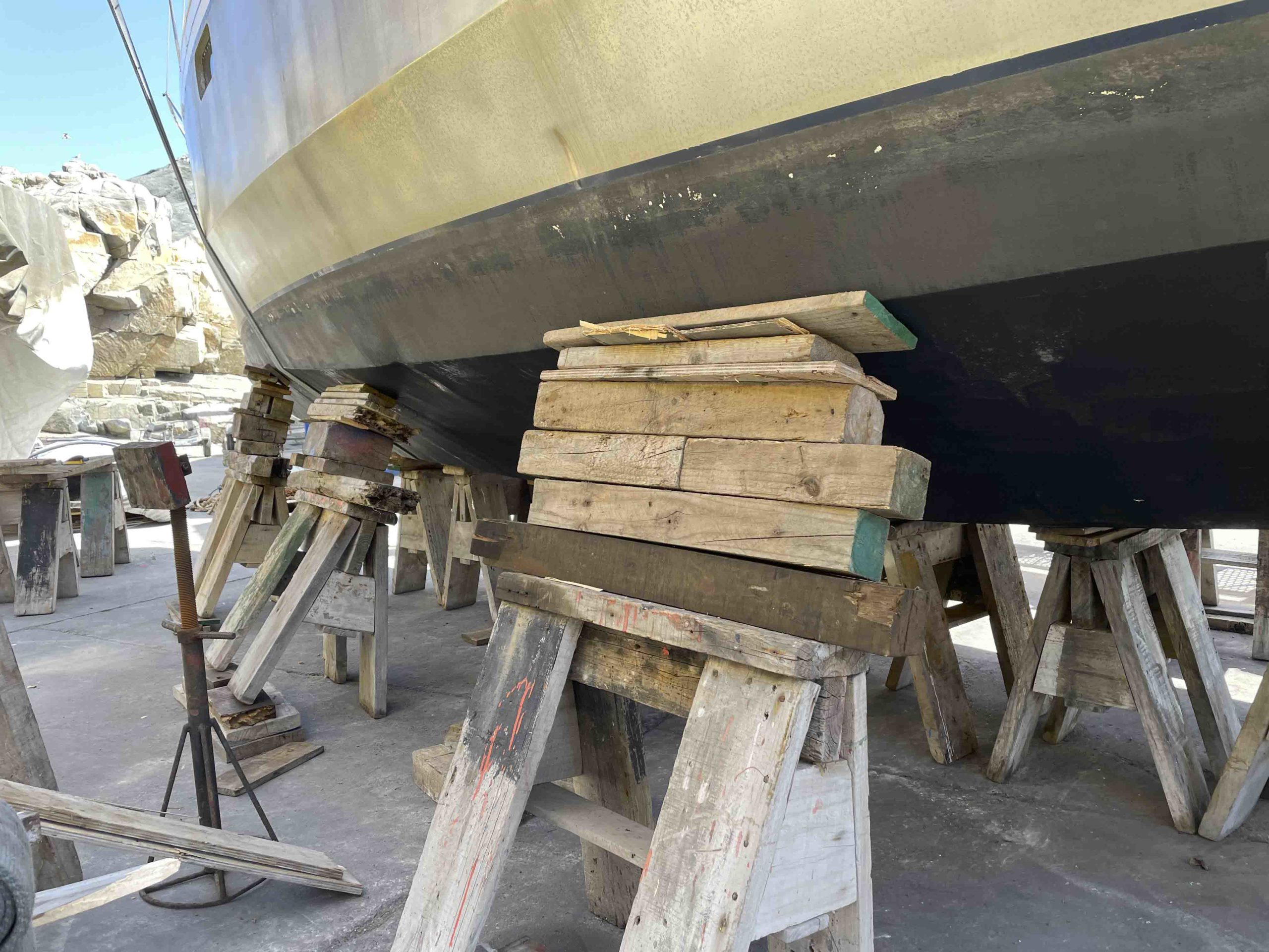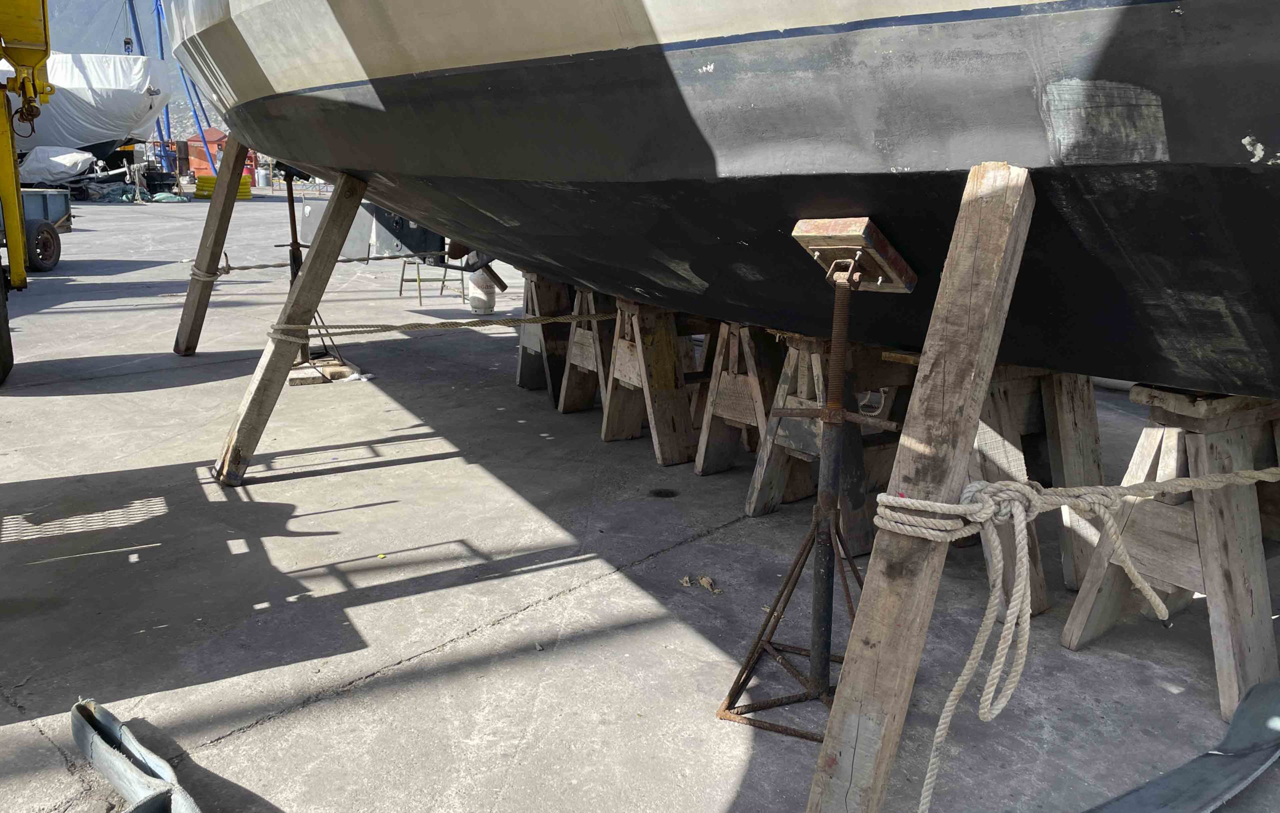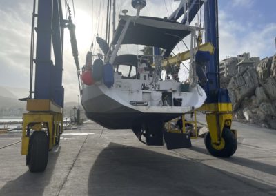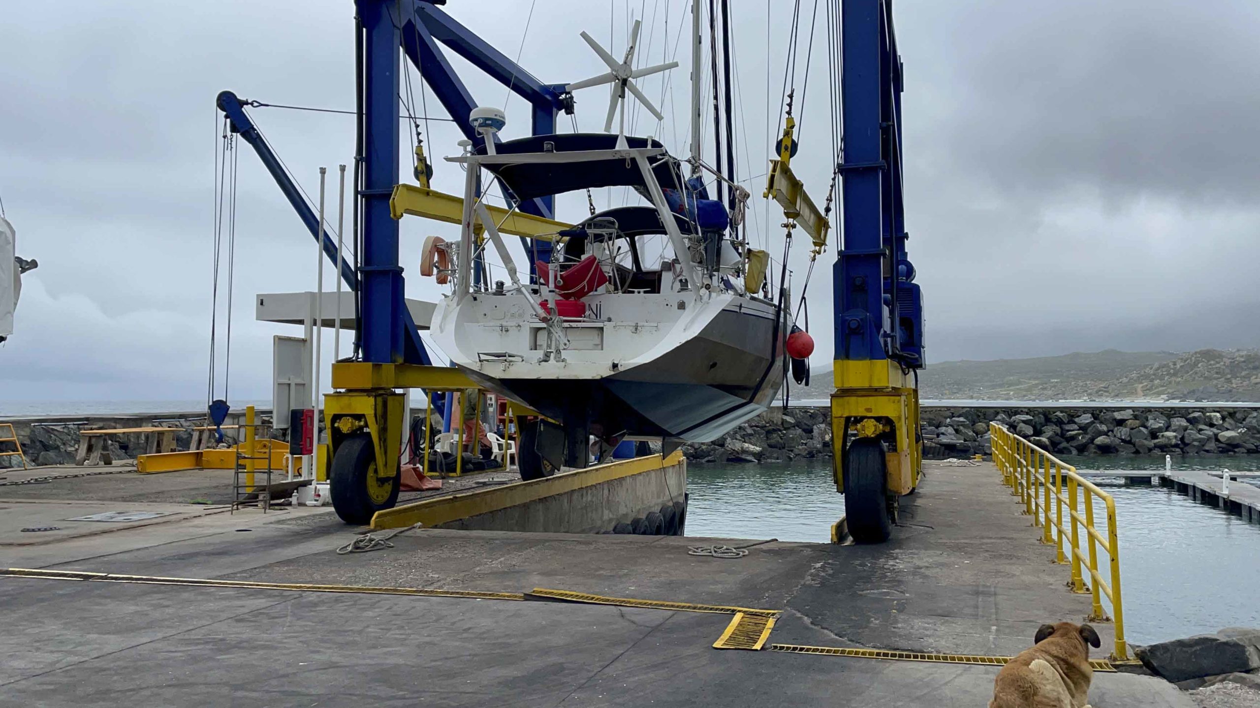 Nous remontons la côte du chili à la recherche d’un endroit sec pour repeindre tout le pont de Metani. C’est à la frontière du désert d’Atacama que nous rejoignons le 2 octobre 2025 une petite marina privée à Las Tacas, située juste avant La Serena, et pouvons sortir le bateau pour entreprendre 1 mois de chantier non stop!