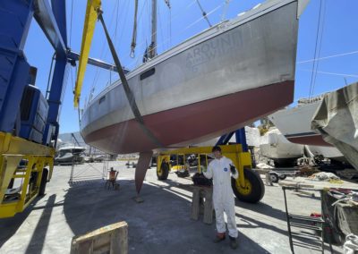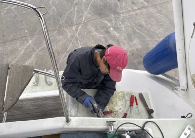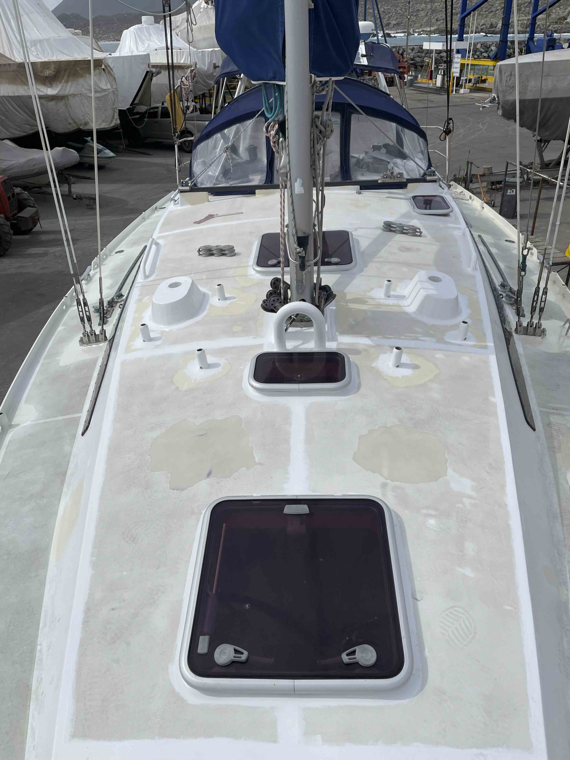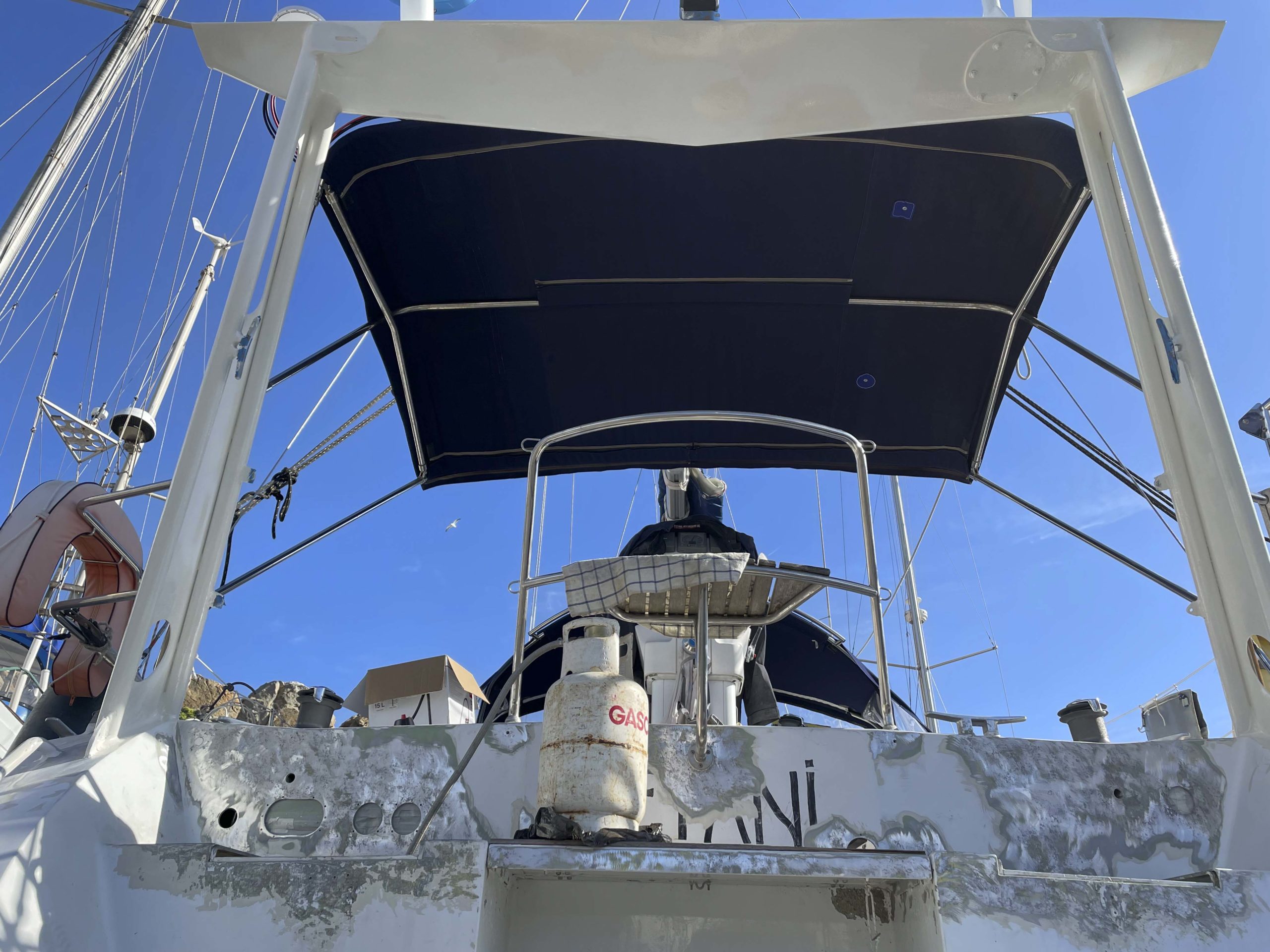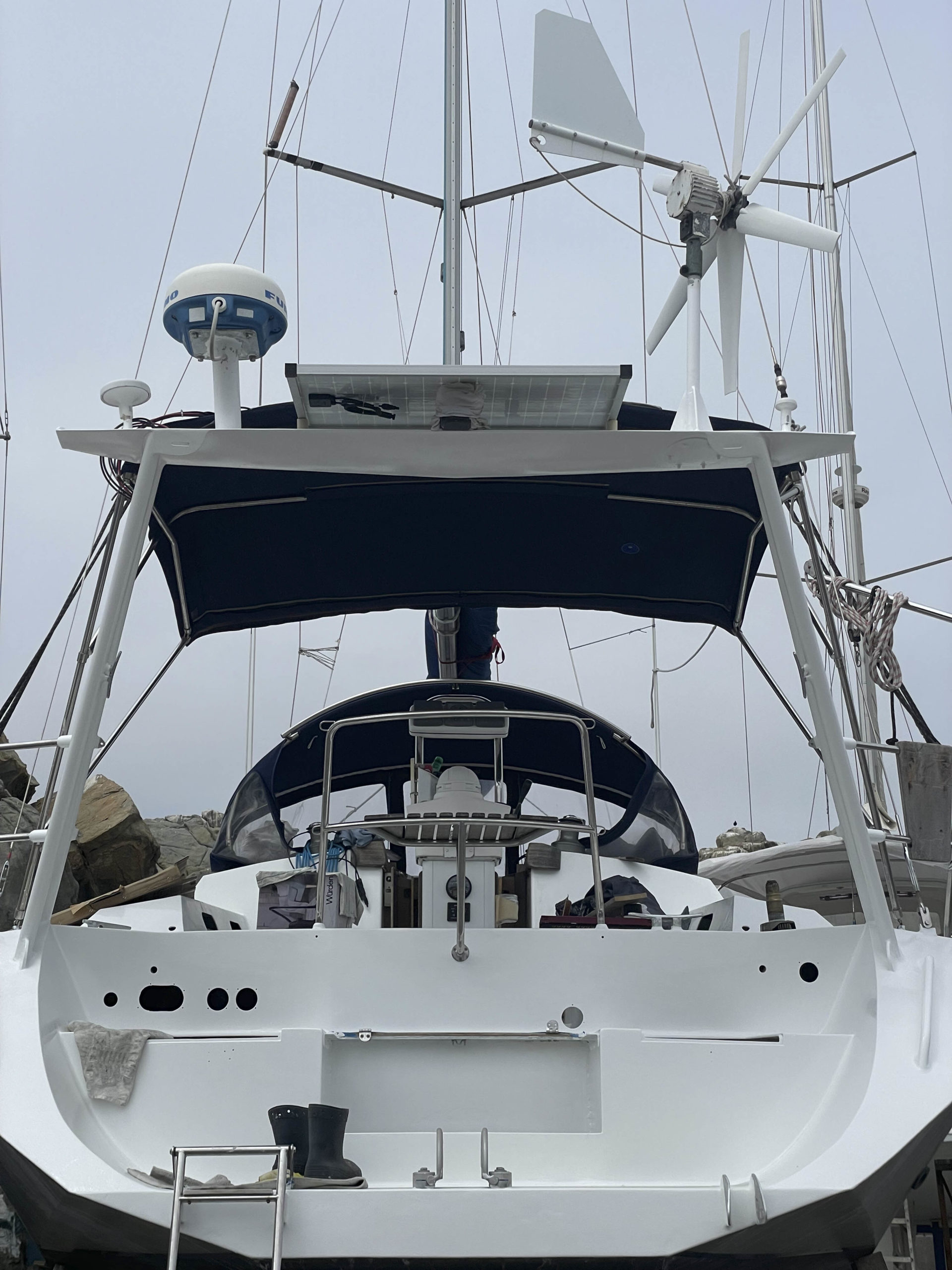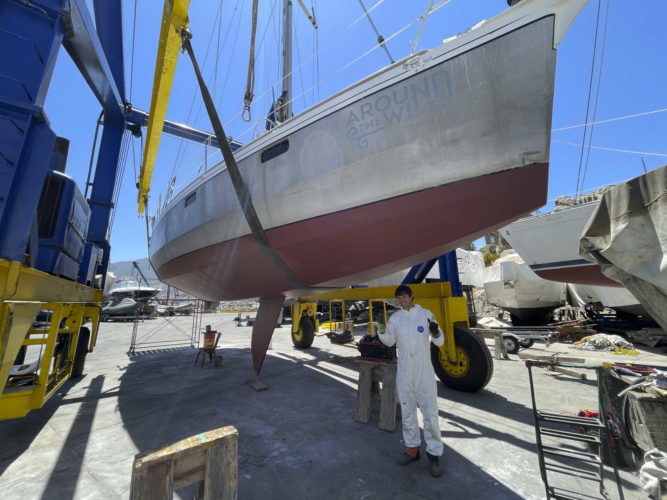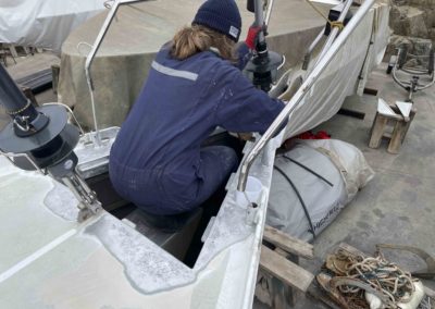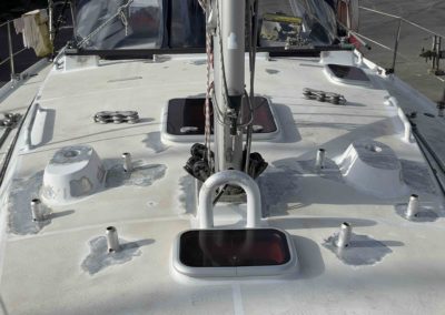 Au programme: changer le guindeau, refaire la peinture et appliquer un anti-dérapant sur tout le pont et la jupe, installer un nouveau panneau solaire, changer les bagues du safran, enlever les listons de notre table à manger, appliquer un nouvel anti-fooling, et d’autre petites babioles!