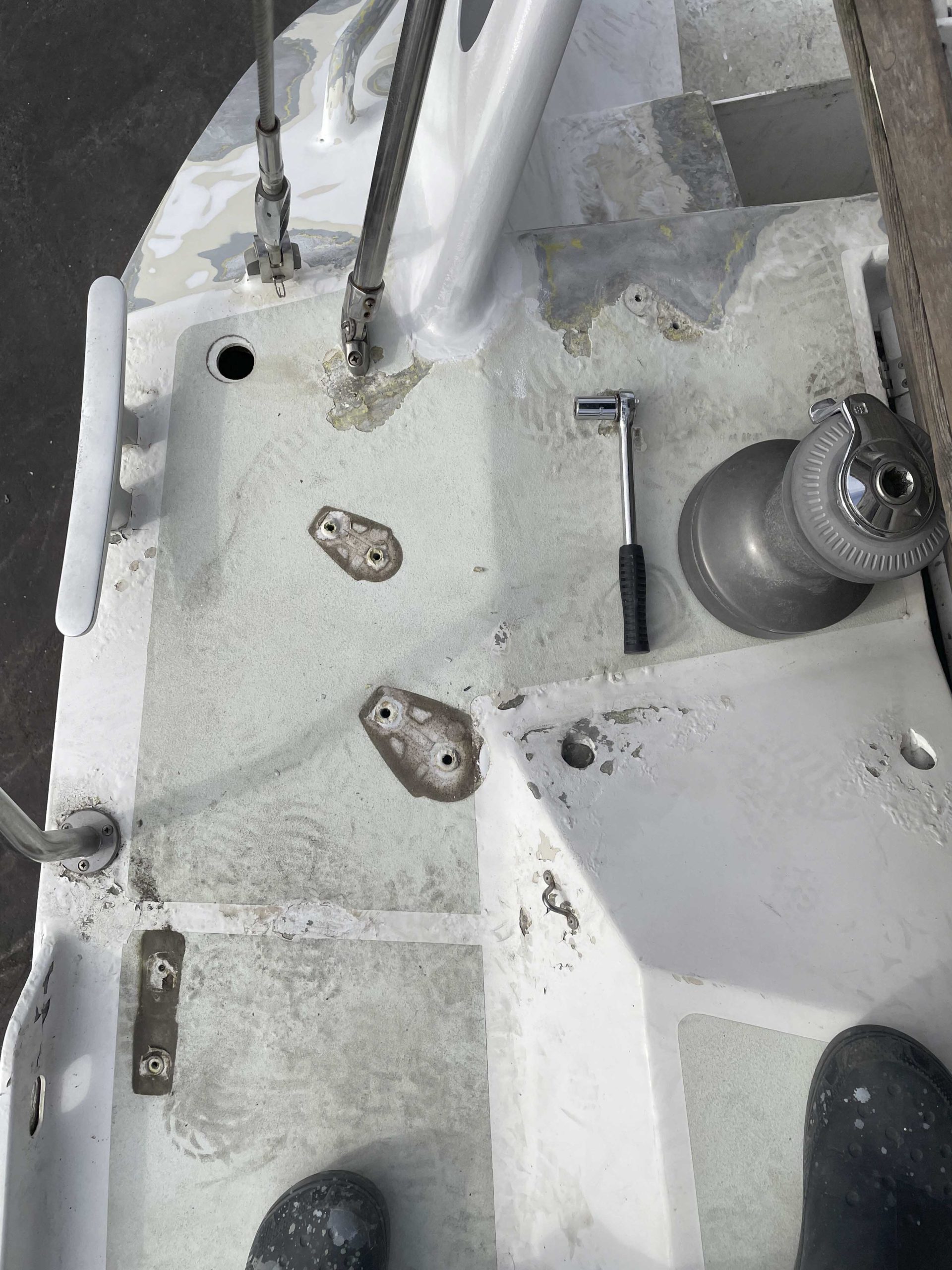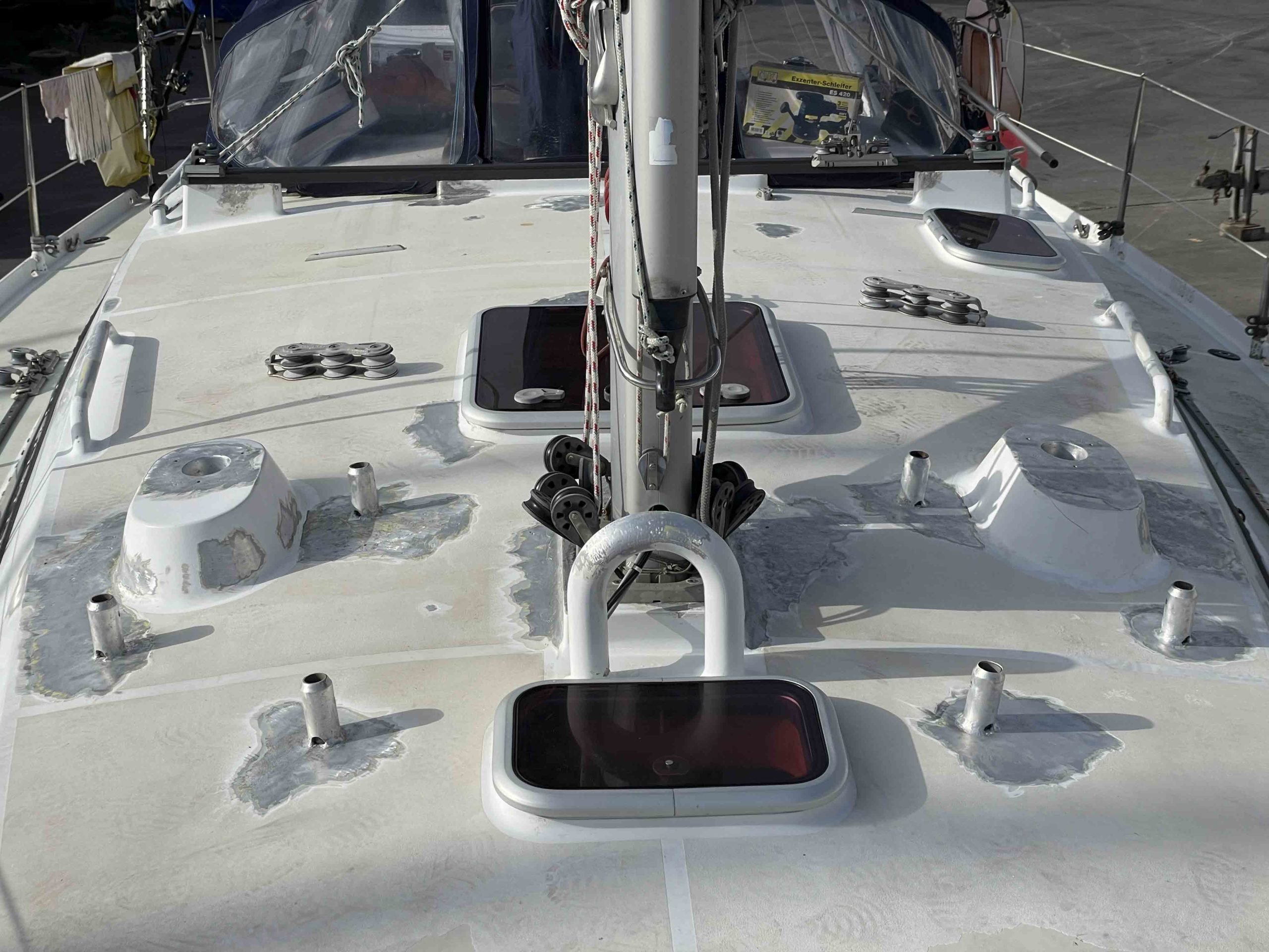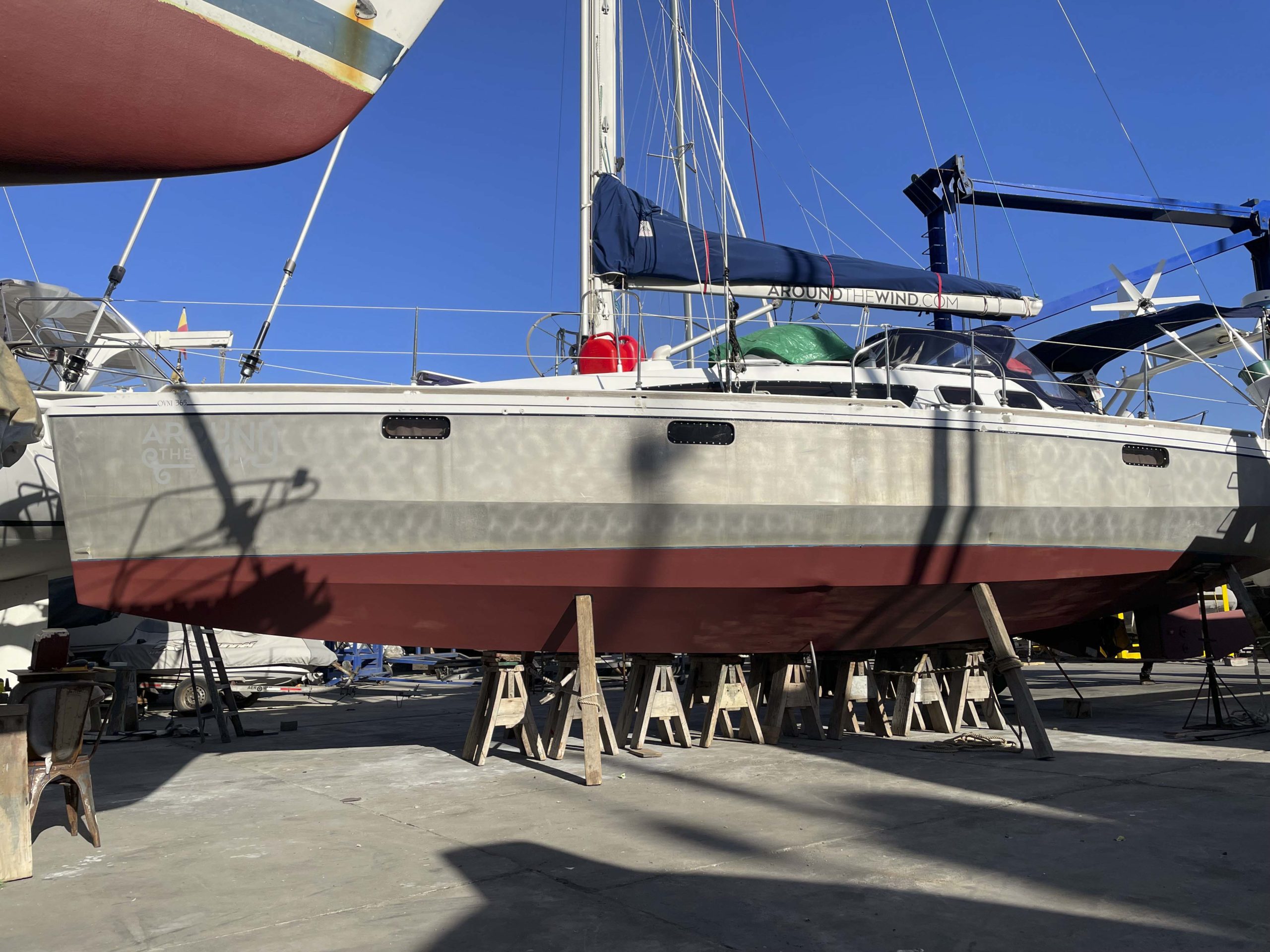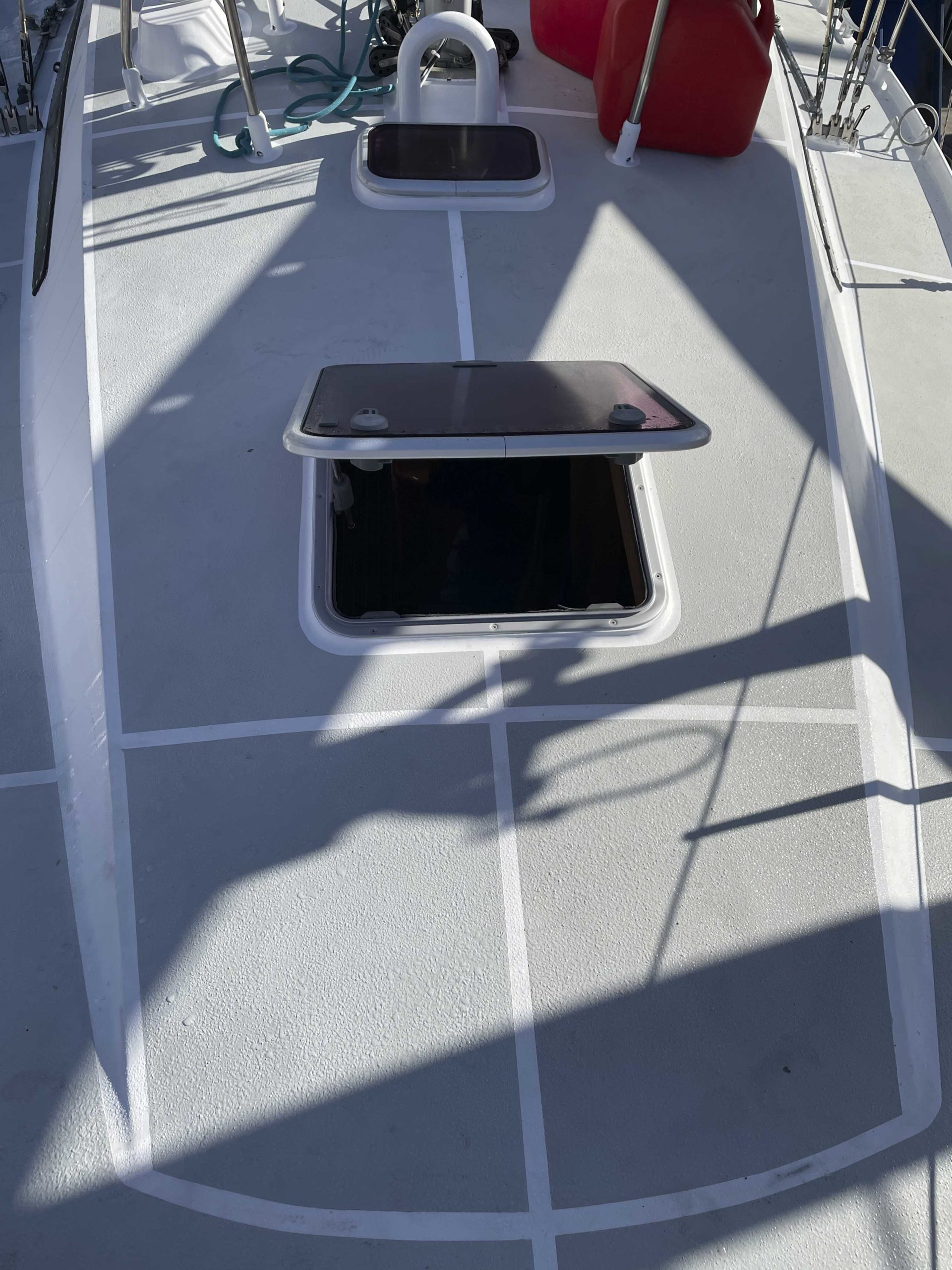 Au programme: changer le guindeau, refaire la peinture et appliquer un anti-dérapant sur tout le pont et la jupe, installer un nouveau panneau solaire, changer les bagues du safran, enlever les listons de notre table à manger, appliquer un nouvel anti-fooling, et d’autre petites babioles!