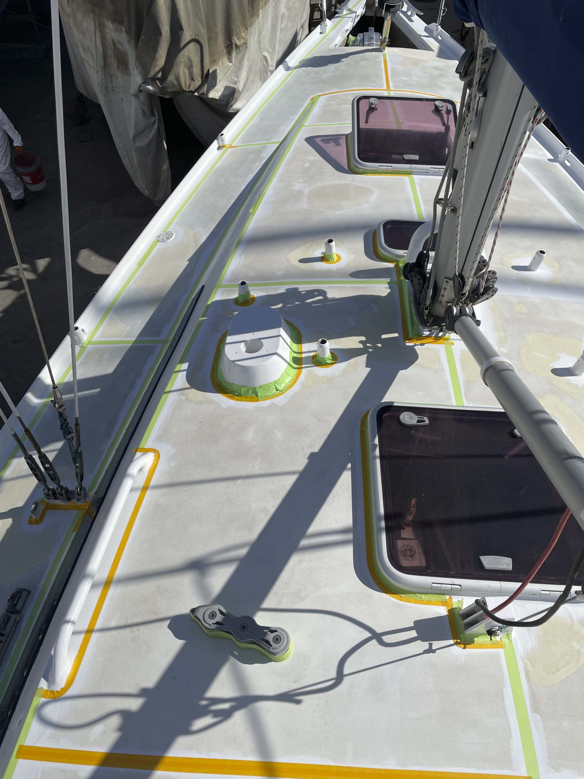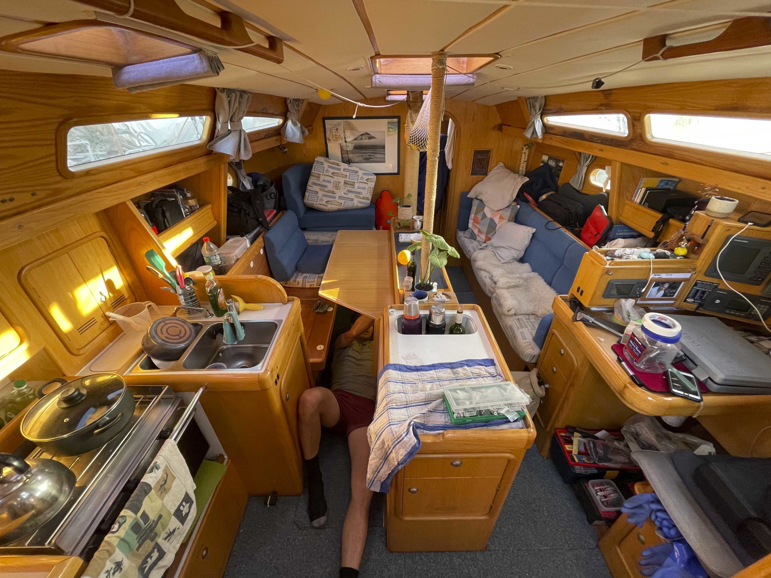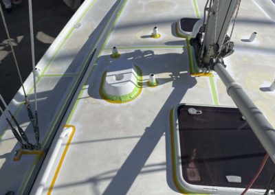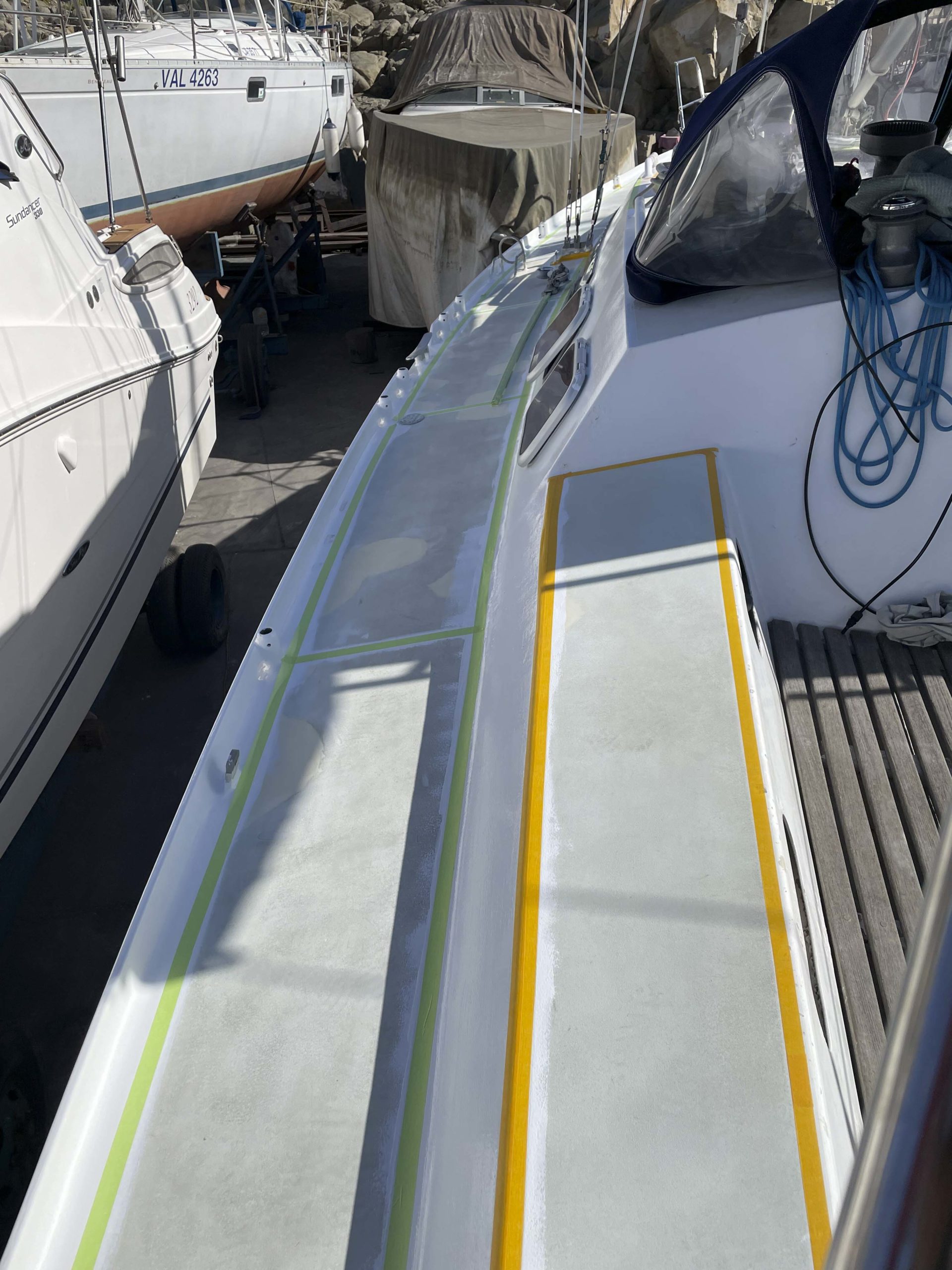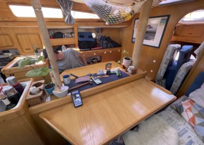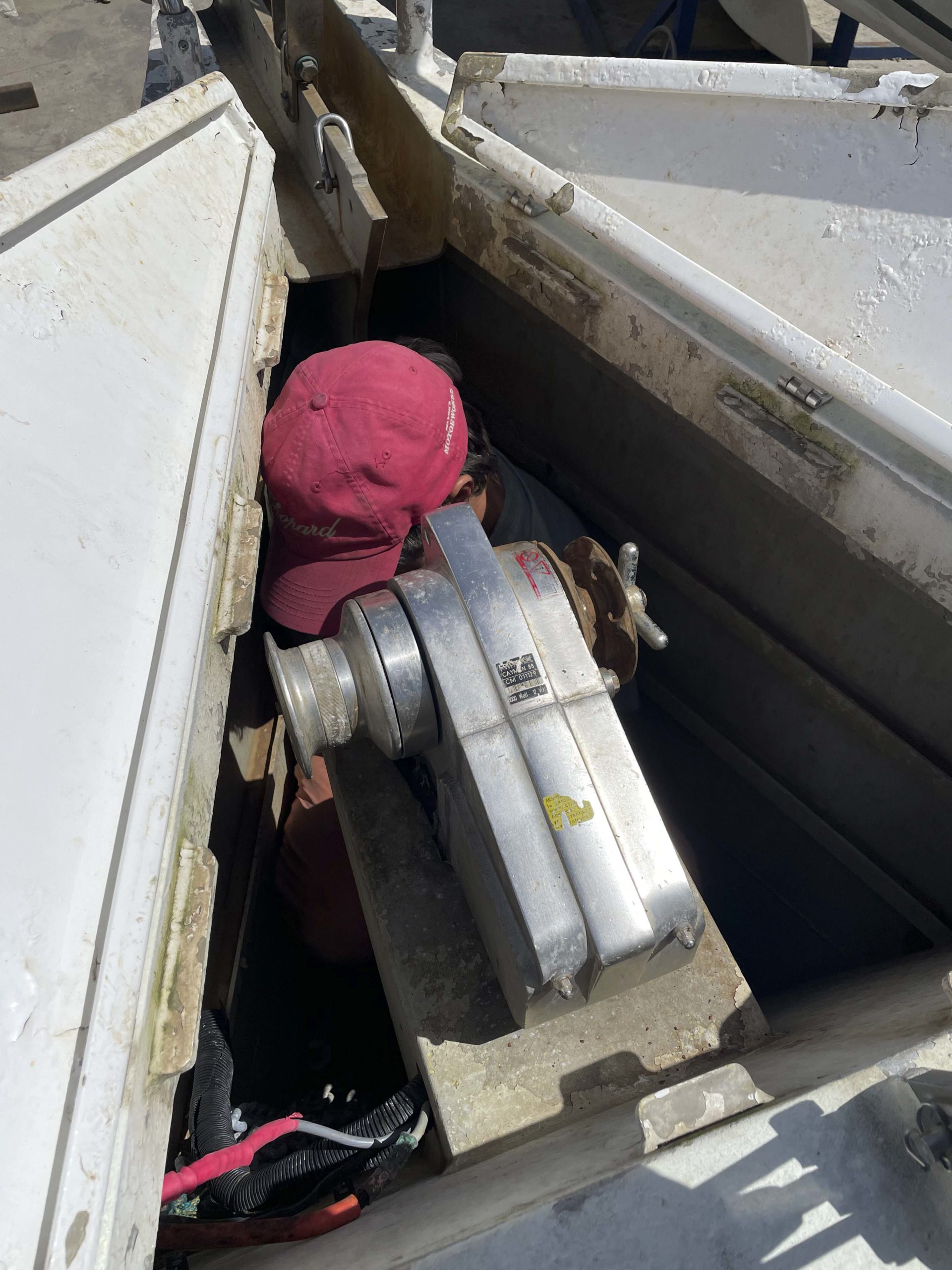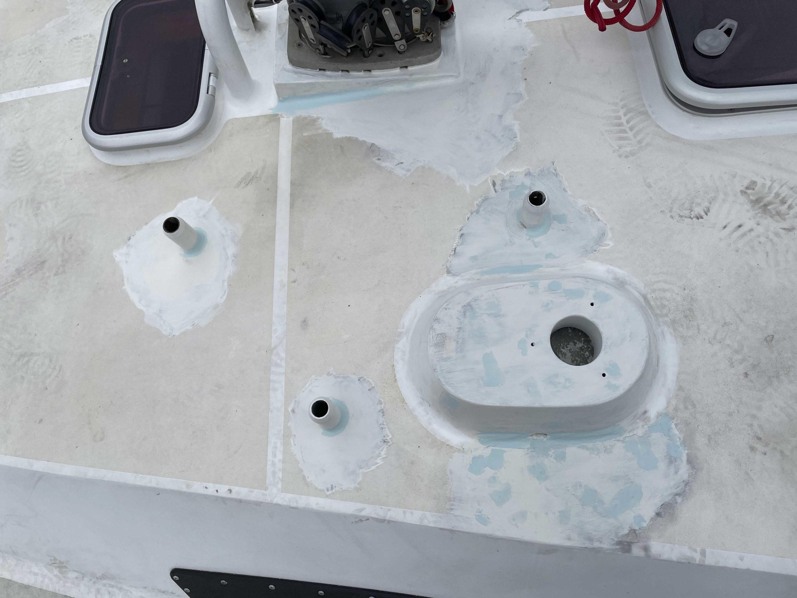 Au programme: changer le guindeau, refaire la peinture et appliquer un anti-dérapant sur tout le pont et la jupe, installer un nouveau panneau solaire, changer les bagues du safran, enlever les listons de notre table à manger, appliquer un nouvel anti-fooling, et d’autre petites babioles!