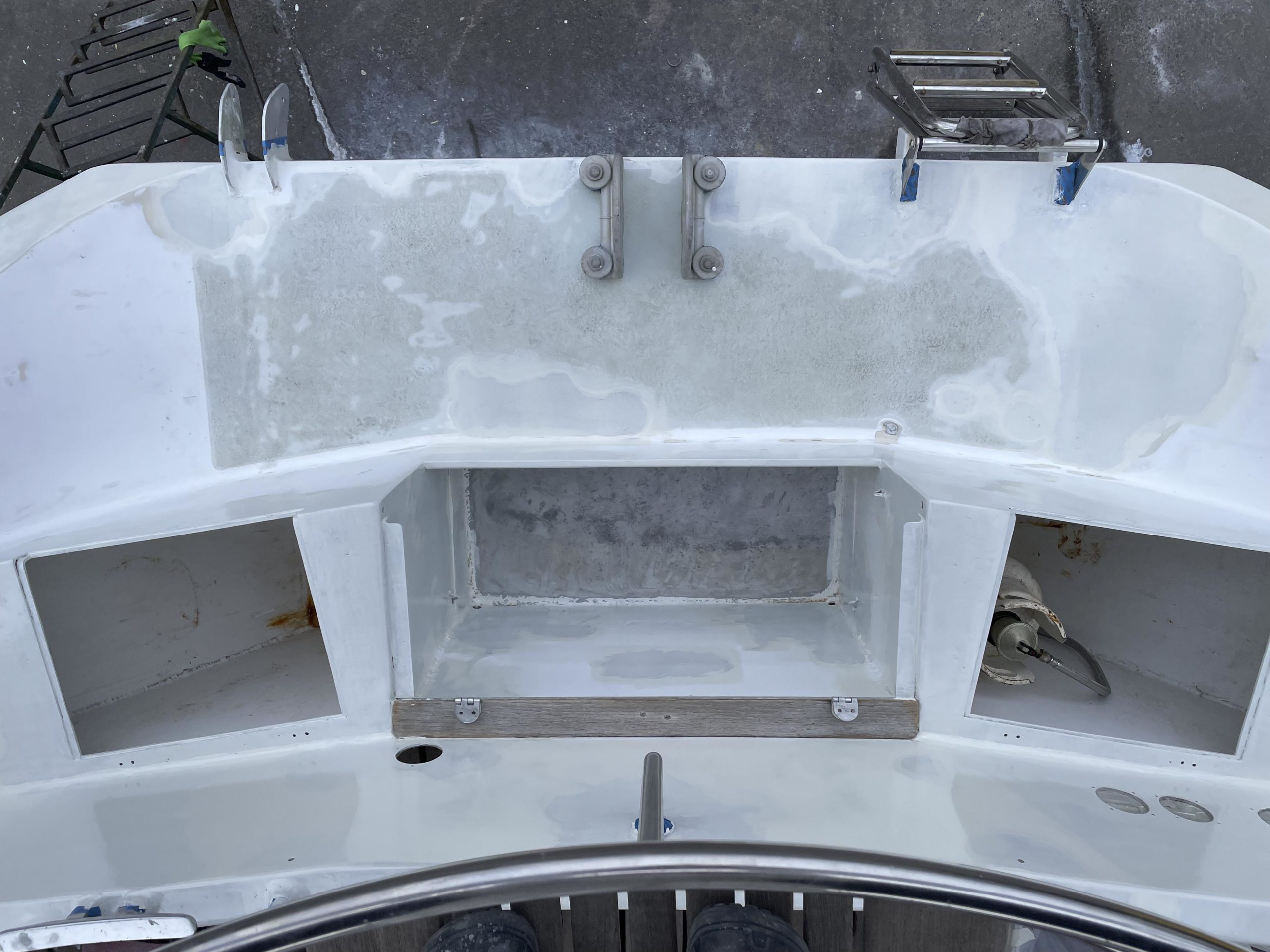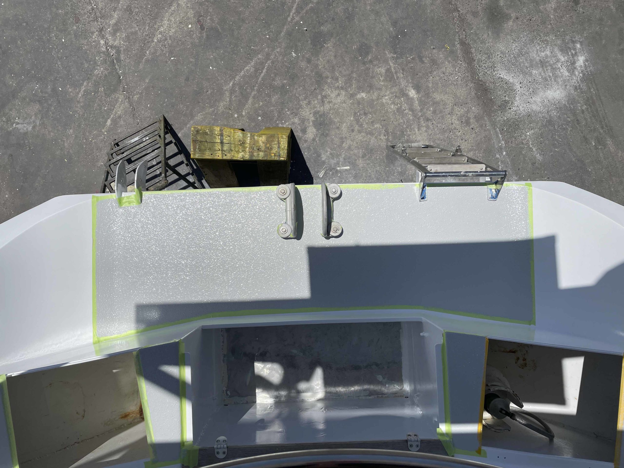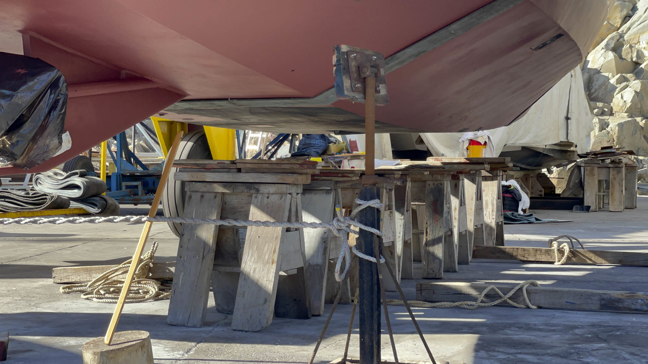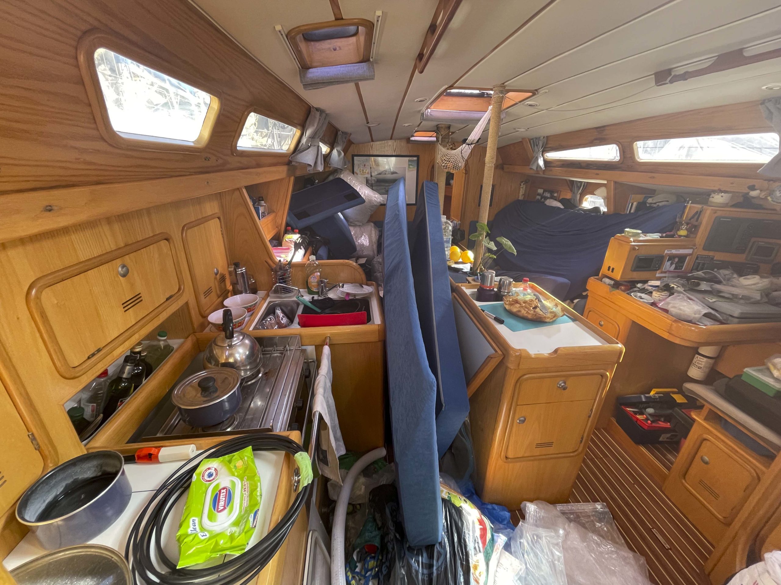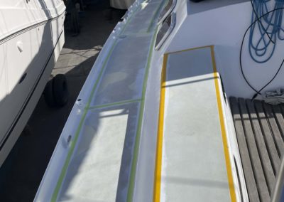 Au programme: changer le guindeau, refaire la peinture et appliquer un anti-dérapant sur tout le pont et la jupe, installer un nouveau panneau solaire, changer les bagues du safran, enlever les listons de notre table à manger, appliquer un nouvel anti-fooling, et d’autre petites babioles!
